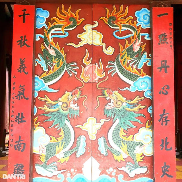 Đặc biệt, tại di tích Chùa Ông, hình tượng rồng được sử dụng khá nhiều từ trang trí mái đến chạm khắc trên cửa, bia đá.